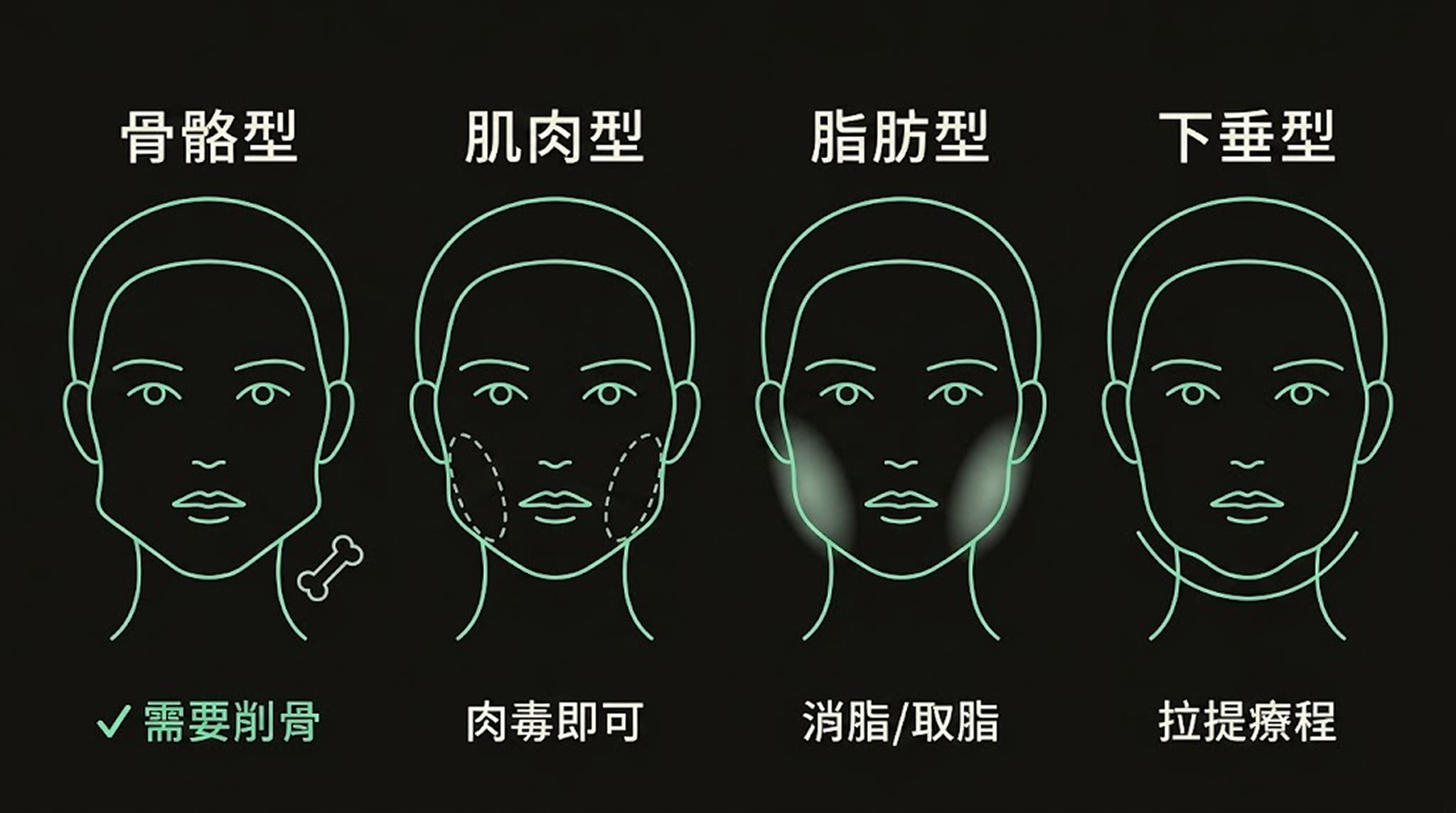 國字臉的成因至少有四種,而其中只有一種——骨骼型——需要透過削骨手術才能根本改善。其餘三種,有完全不同的、更簡單的解決方案。